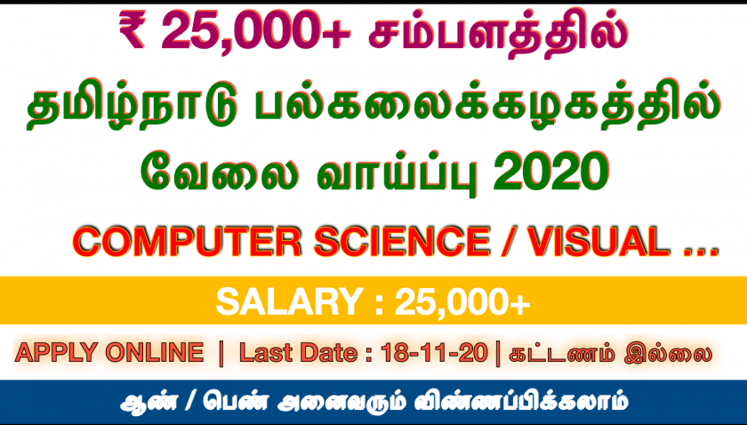 ₹ 25,000 சம்பளத்தில் தமிழ்நாடு பல்கலைக்கழகத்தில் வேலை வாய்ப்பு 2020