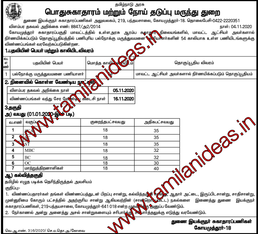 சுகாதார துறையில் வேலை வாய்ப்பு . பல்நோக்கு பணியாளர் காலிபணியிடங்கள் உள்ளன. APPLY OFFLINE / மூலம் உங்களின் விண்ணப்பங்களை அனுப்ப வேண்டும்