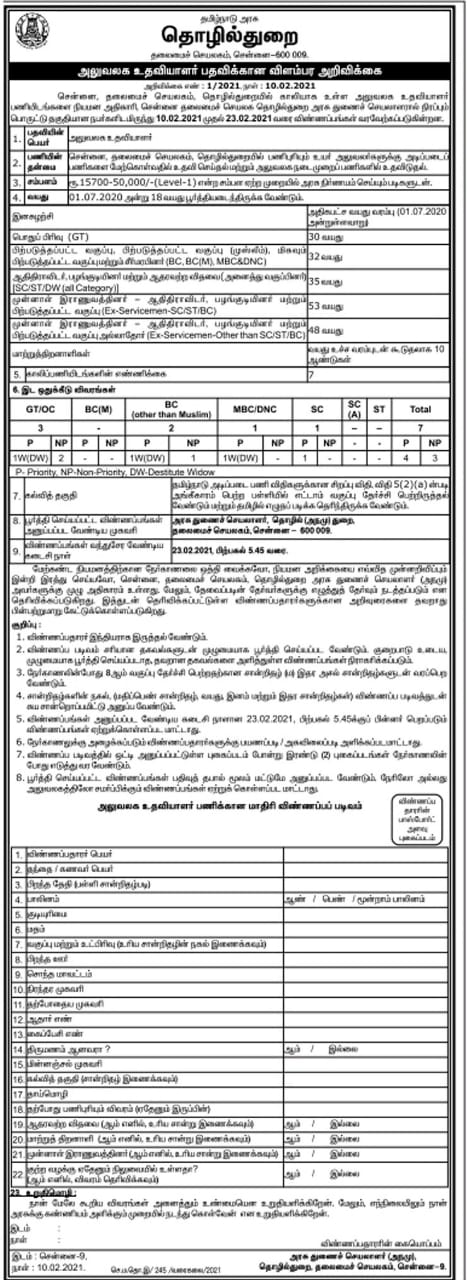 தமிழக அரசு தலைமை செயலகத்தில் வேலை 2021 recently published ads for seeking applications from qualified candidates for filling up the vacant post of OFFICE ASSISTANT POST.